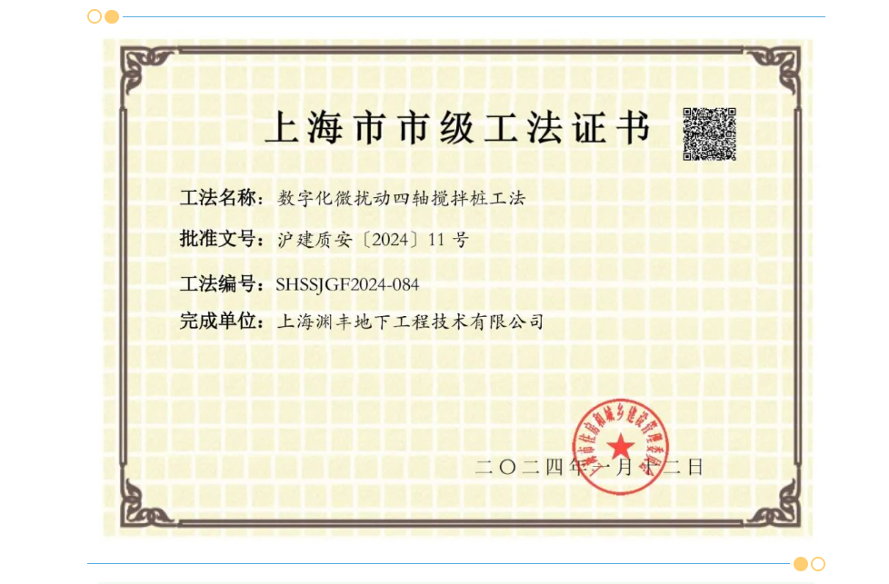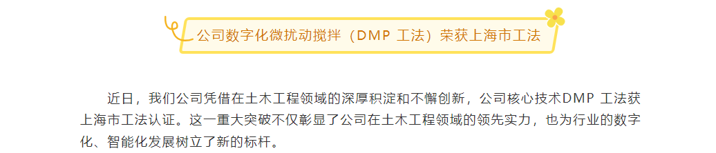 公司数字化微扰动搅拌(DMP 工法)荣获上海市工法